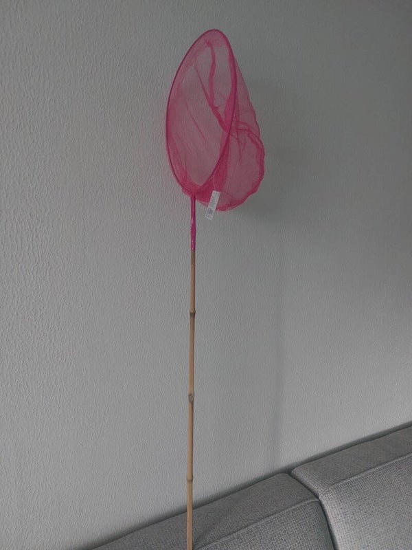Visnet, vogelnet, vlindernet kleur roze doorsnee net 28 cm Met bamboe stok de totale lengte is circa 108 cm