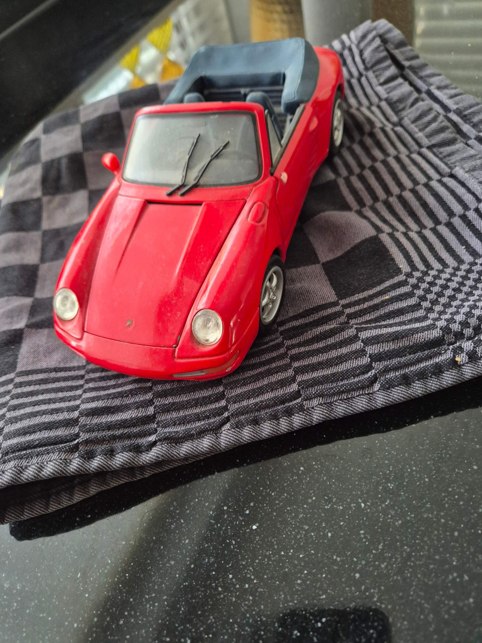 Porshe carera 911 cabriolet schaal 1:18 is stoffig van het staan op de plank